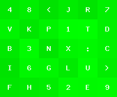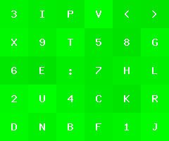 by Joel IBelow is an image with green tiles of varying color, each with a character label.